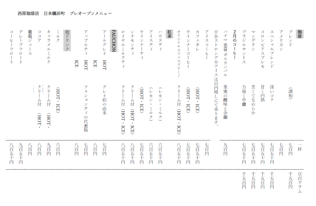 西原珈琲店日本橋浜町は、2月14日にオープンします。